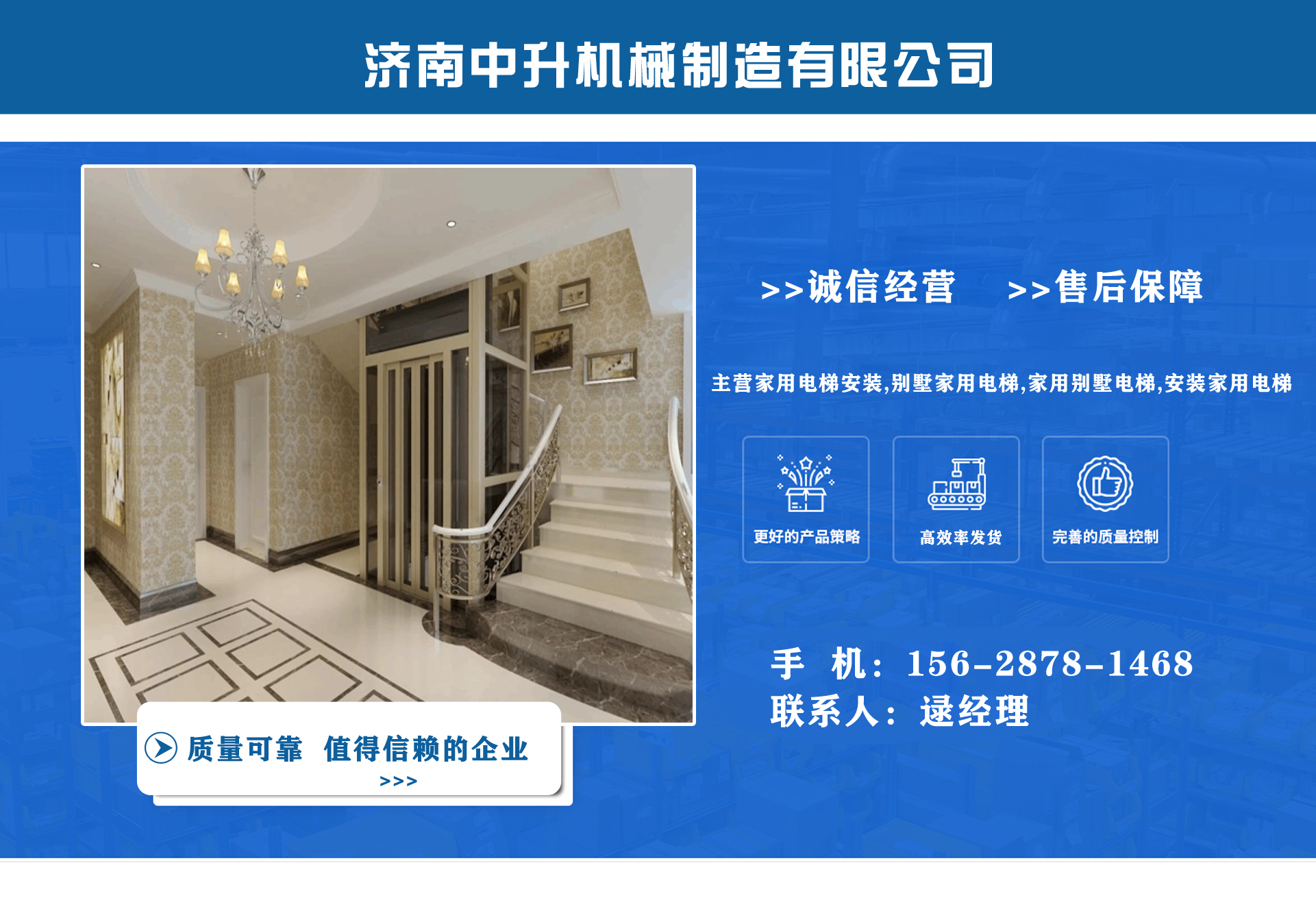 濟南中升機械制造有限公司主營家用電梯安裝,別墅家用電梯,家用別墅電梯,安裝家用電梯等業務,質量可靠,值得信賴! 公司為客戶提供免費上門測量,根據實際情況1對1服務,保障符合用戶需求,終身提供售后服務,讓用戶買的舒心用的放心。匠心團隊,打造信賴產品,我們有團結、奮進拼搏的匠心團隊,為您提供可信賴的品質保證。 從創立以來一直嚴格執行質量管理體系、環境管理體系等相關標準管理體系,“顧客滿意”是我們始終如一的追求。我們有屬于自己培養的安裝隊伍,24小時服務電話,為您提供可靠的服務與支持。 我們的愿景是建設國內具有影響力的電梯公司,做城市美好空間的好伙伴。...